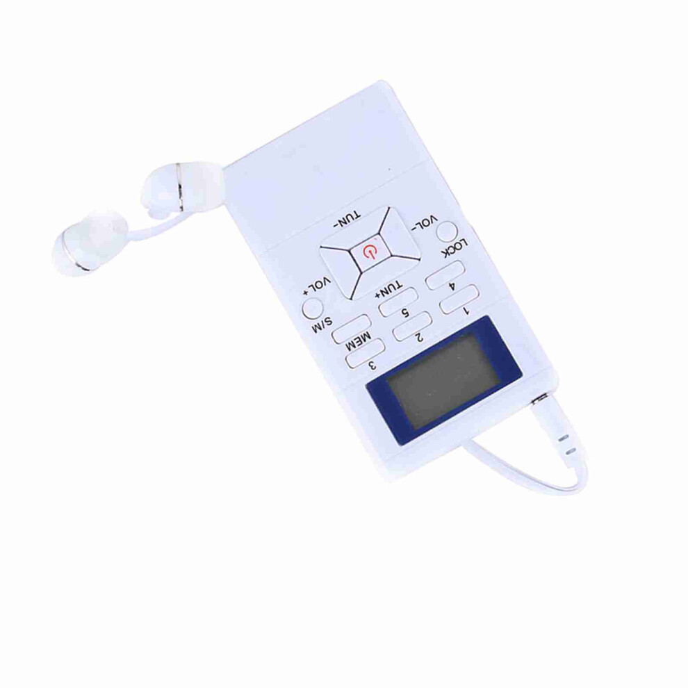 Small Wireless FM Radio Receiver with Digital Display and Earphones White