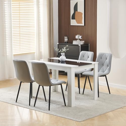 Menaka Modern Small Wood Dining Room Table and Chairs Set of 4 for Small Space, 5pcs 120cm Kitchen Table with 4 Seats Chairs Set (Black Leather Argyle Grid Chairs, 120cm grey table, 4 chairs)