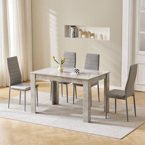 Menaka Modern Small Wood Dining Room Table and Chairs Set of 4 for Small Space, 5pcs 120cm Kitchen Table with 4 Seats Chairs Set (grey leather line chairs, 120cm grey table, 4 chairs)