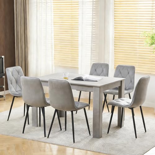 Menaka Modern Small Wood Dining Room Table and Chairs Set of 4 for Small Space, 5pcs 120cm Kitchen Table with 4 Seats Chairs Set (Grey Velvet Chairs, 120cm grey table, 6 chairs)