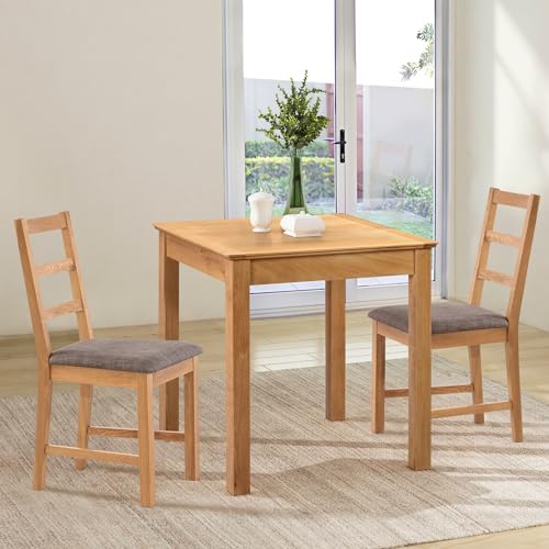Hallowood Furniture Hereford Oak Small Dining Table And 2 Chairs, Solid Oak Square Kitchen Table and Chairs in Straight Back and Upholstered Beige Fabric, Dining Room Sets for Home and Café