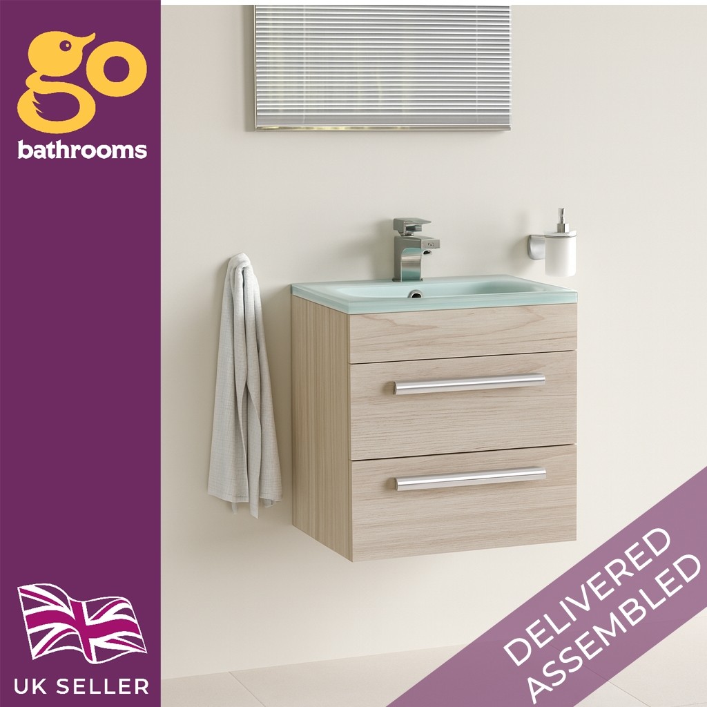 500 Light Wood Bathroom Vanity Unit Wall Hung 50cm 2 Drawer Small Sink Unit