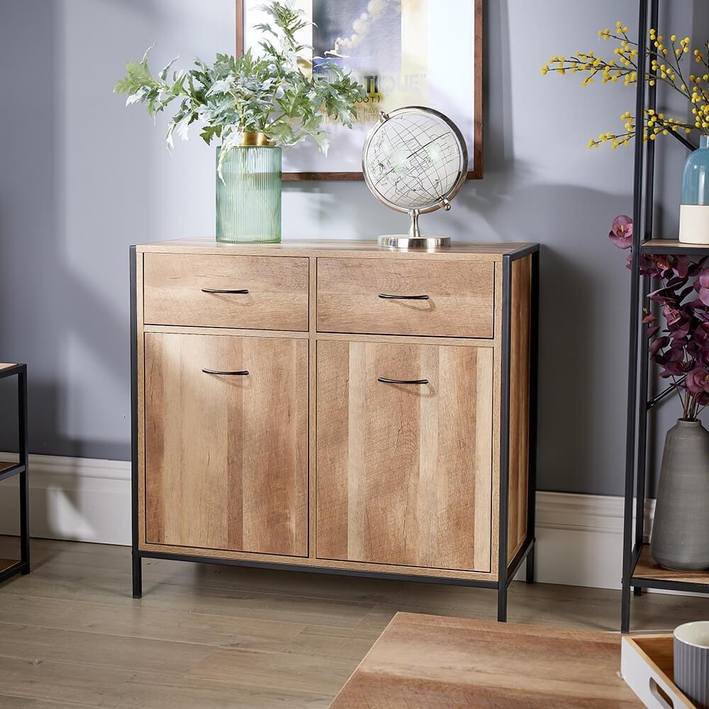 Oakmere 2 Drawer 2 Door Small Industrial Sideboard Unit