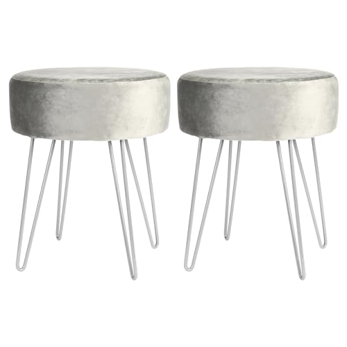 Harbour Housewares Velvet Round Foot Stools - Grey with Silver Legs - Pack of 2 - Small Modern Dressing Table Pouffe Footstool Vanity Seats Vanity Chairs Footstools for Living Room, Bedroom