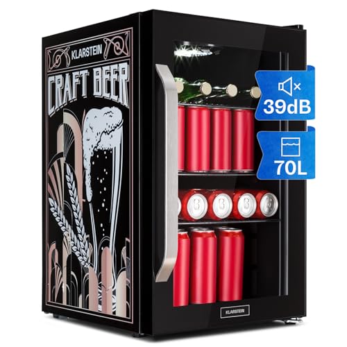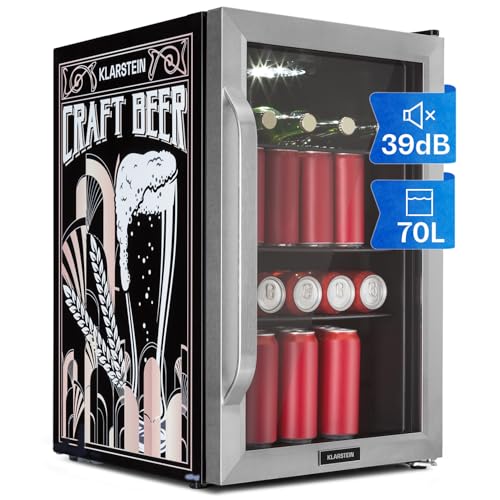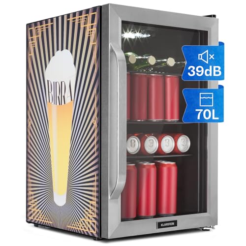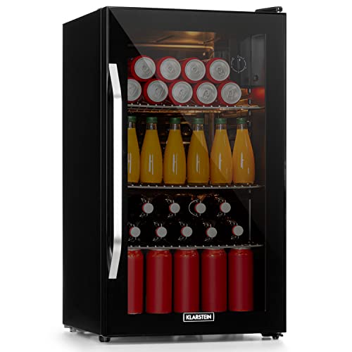 KLARSTEIN Beer Fridge, Glass Mini Fridge for Bedrooms, Food, & Drinks, Small Fridge Wine Cooler, Glass Door Drinks, 80L Table Top w/Removable Shelves, Indoor/Outdoor Home Bar Storage