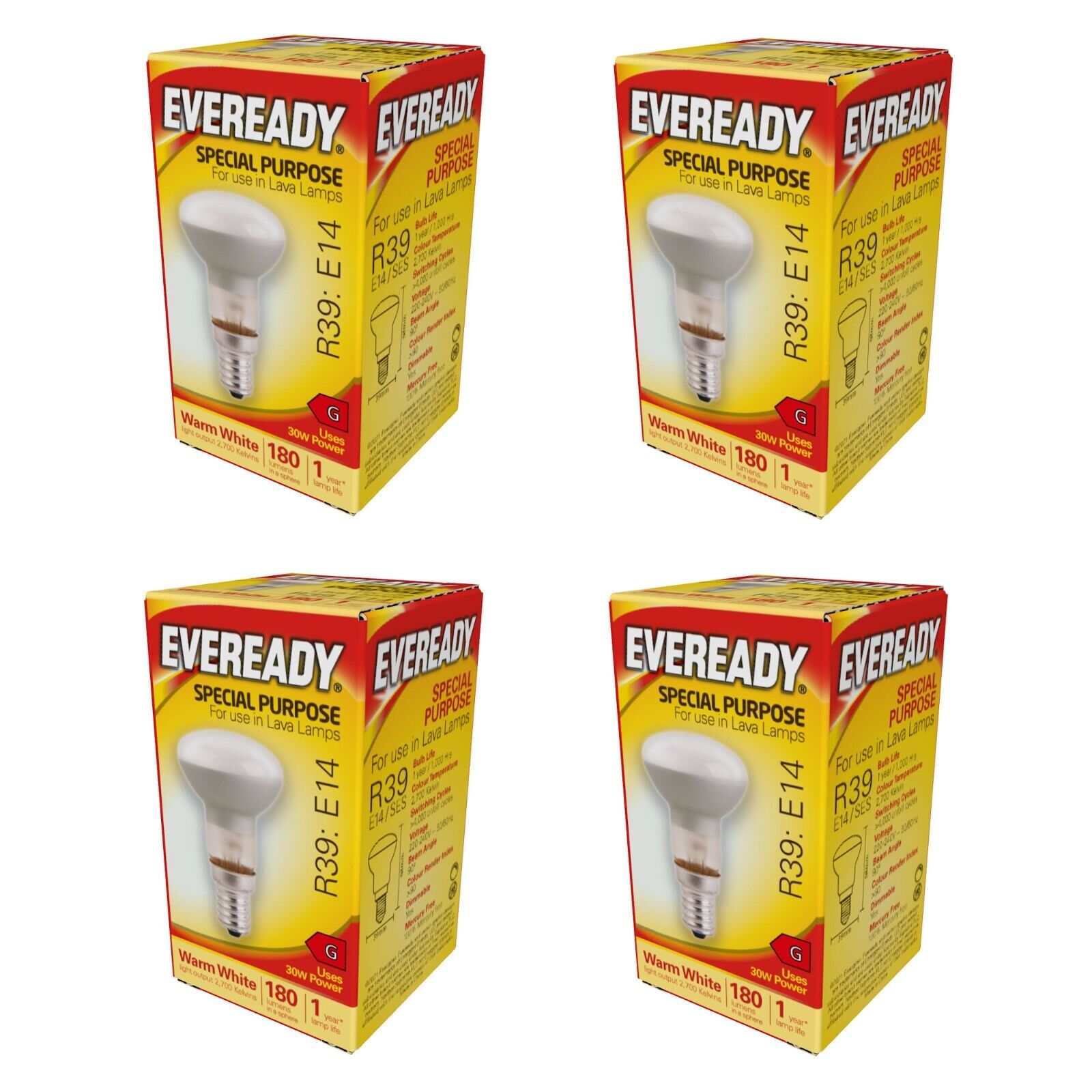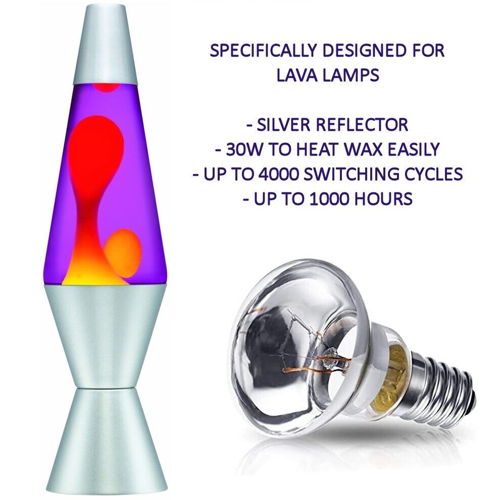 4 Lava Lamp Lightbulbs 30W 180 lumens R39 E14 Small Edison Screw Reflector Bulb