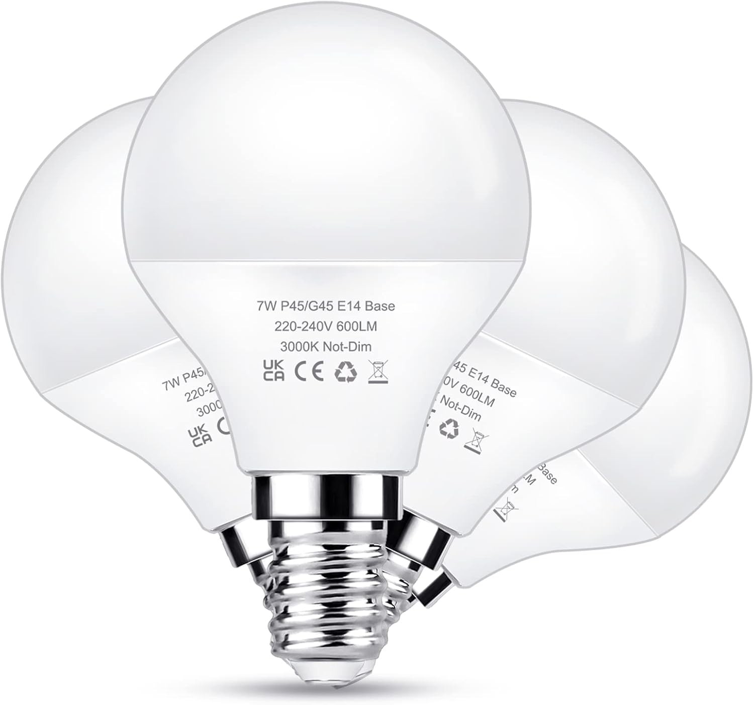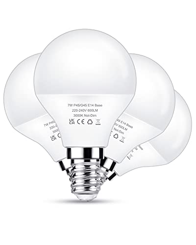 Flaspar E14 LED Light Bulb 60W Equivalent, 7W Small Edison Screw Golf Ball Bulb Warm White 3000K, 600LM SES E14 LED Bulbs, Non-dimmable, Energy Saving Bulbs, 4 Pack
