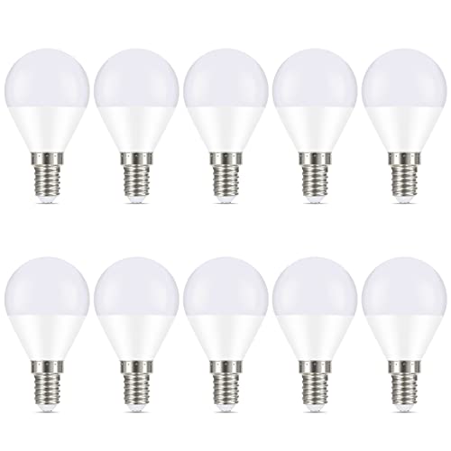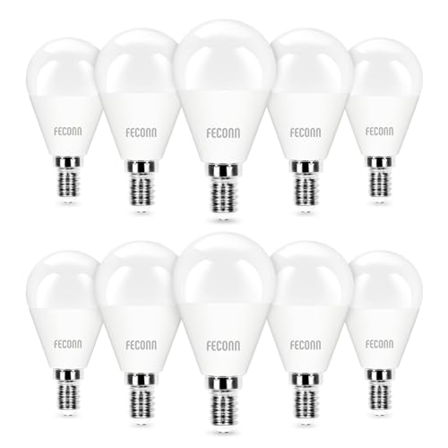 FECONN E14 Light Bulbs, 7W 550lm E14 LED Bulb, Cool White 6500K Daylight Small Edison Screw (SES) Bulb, G45 Golf Ball Energy Saving Lightbulbs, Non-dimmable (10 Pack, Daylight)