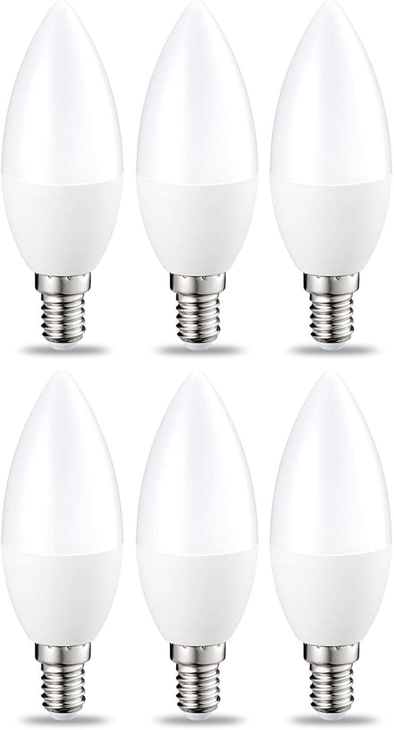 Amazon Basics LED E14 Small Edison Screw Candle Bulb, 5W (Equivalent to 40W), Warm White, Dimmable- Pack of 6