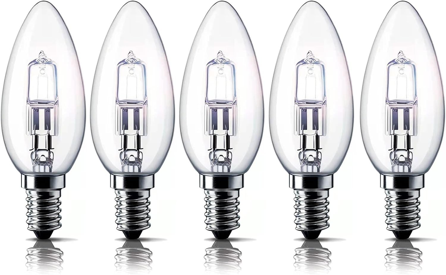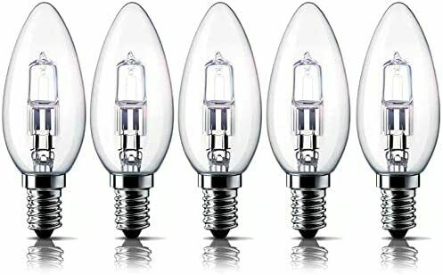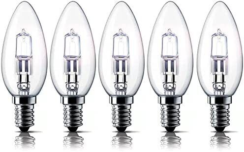 E14 42W Halogen Candle Light Bulbs, Small Edison Screw Bulb (SES) 2700K Warm White Dimmable Pack of 5