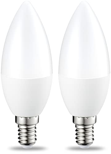 Amazon Basics LED E14 Small Edison Screw Candle Bulb, 6W (Equivalent to 40W), CRI80, Warm White, Dimmable- Pack of 2