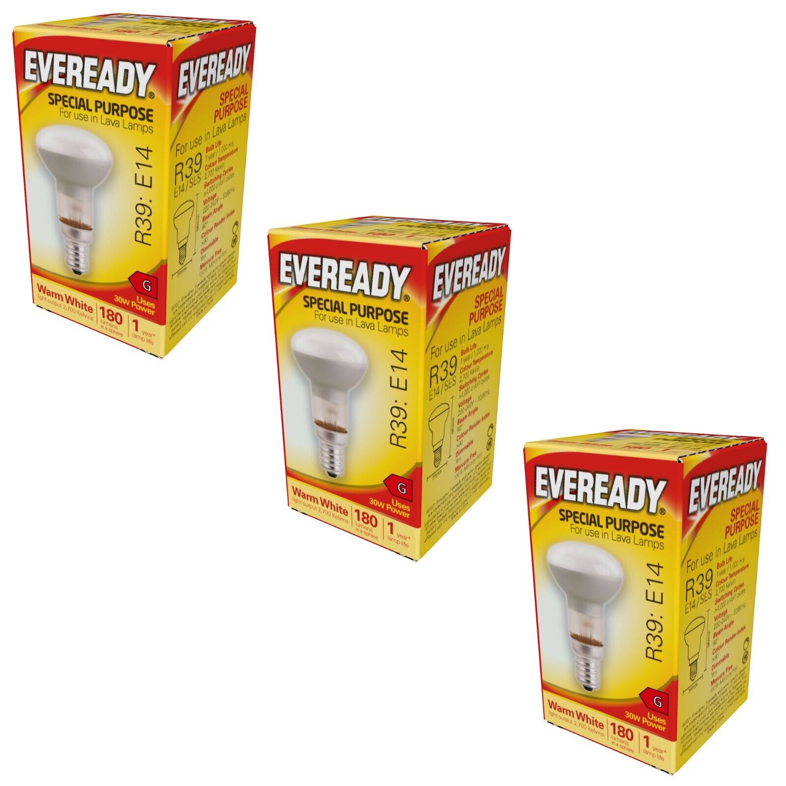 3 Lava Lamp Lightbulbs 30W 180 lumens R39 E14 Small Edison Screw Reflector Bulb