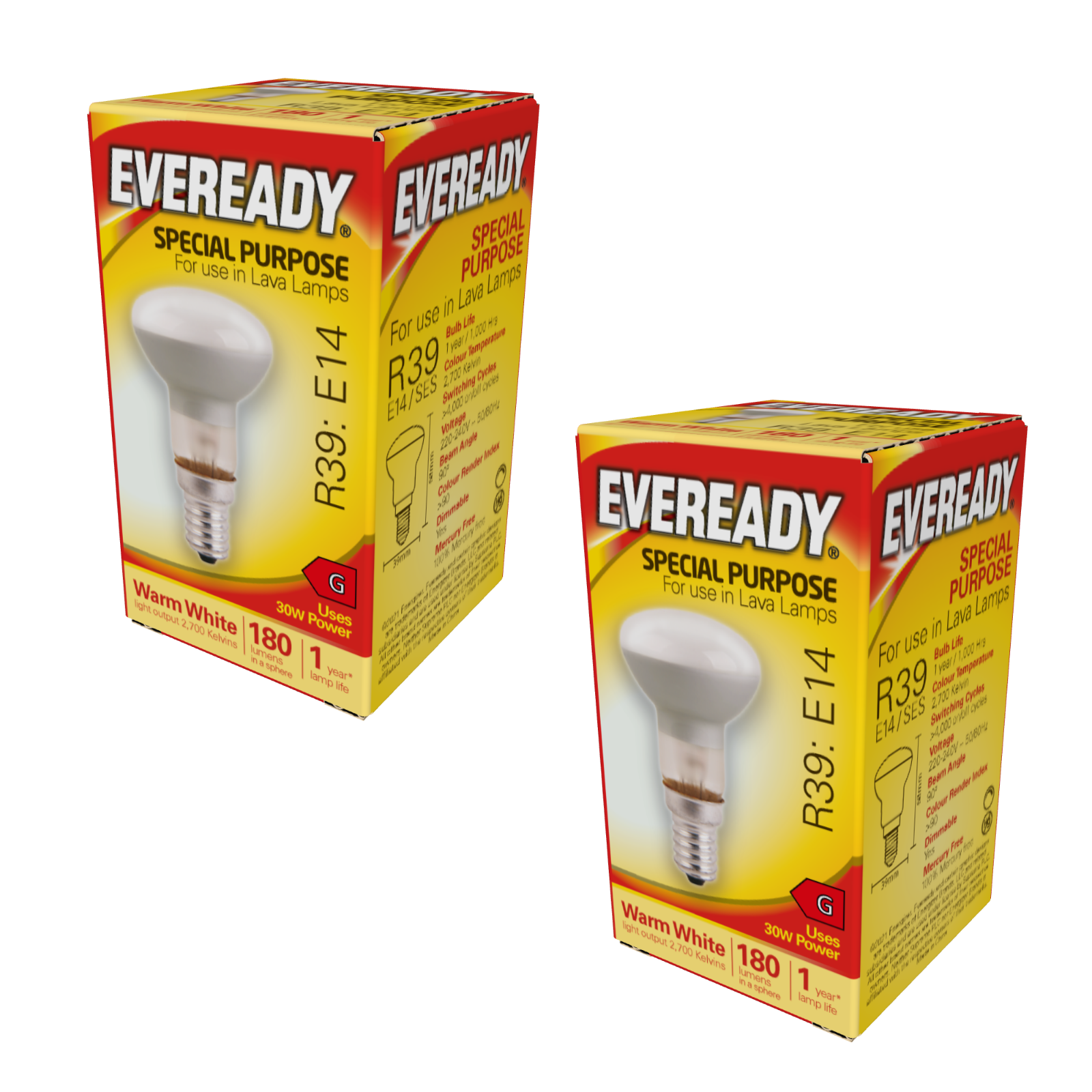 2x Lava Lamp Lightbulbs 30W 180lm R39 E14 Small Edison Screw Reflector Bulb