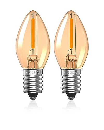 Luxvista 0.5W E14 LED Light Bulbs, C7 Night Light Bulb, 2200K Amber Warm White LED Salt Lamp Bulbs, SES Vintage Small Screw Edison Bulb, Mini E14 Candle Light Bulbs- 2Pack