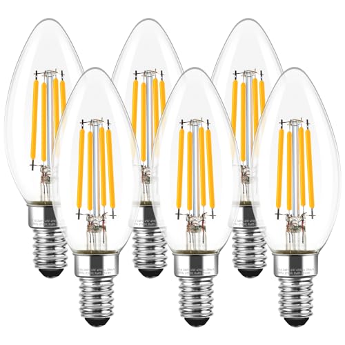 E14 Dimmable Led Candle Bulb,SES Filament Small Edison Screw Light Bulbs,4w 40W Equivalent, Warm White 2700K, 400lm (6, Warm White)
