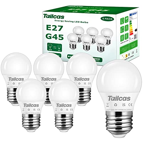 Tailcas E27 Screw Bulb 40W Equivalent, 5W ES LED Bulb Warm White 3000K, 450LM Small Edison Screw in Light Bulbs, Non Dimmable, G45 Golf Ball Energy Saving Light Bulb for Home Lamp, 6 Pack