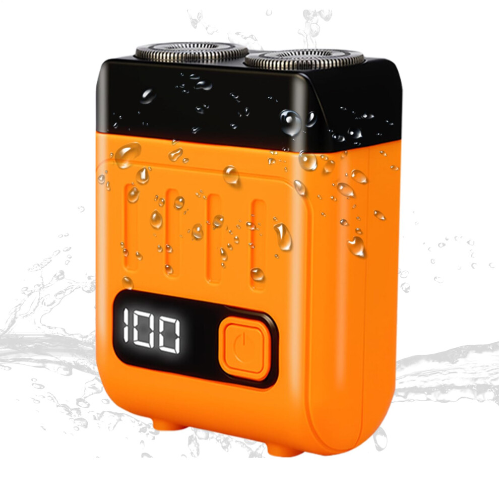 Electric Shaver Rechargeable Cordless Razor With Double Head Design For Men Small Size 2.76x2.17x1.14 Inches Orange Black Travel Grooming Tool