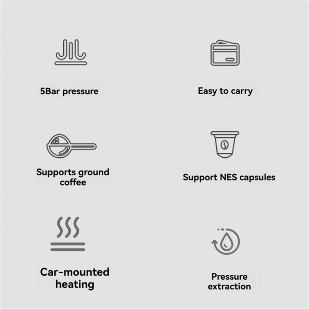 Car Coffee Espresso Maker Portable Coffee Maker 2 in 1 Small Travel Espresso Machine Heating Extraction for RV