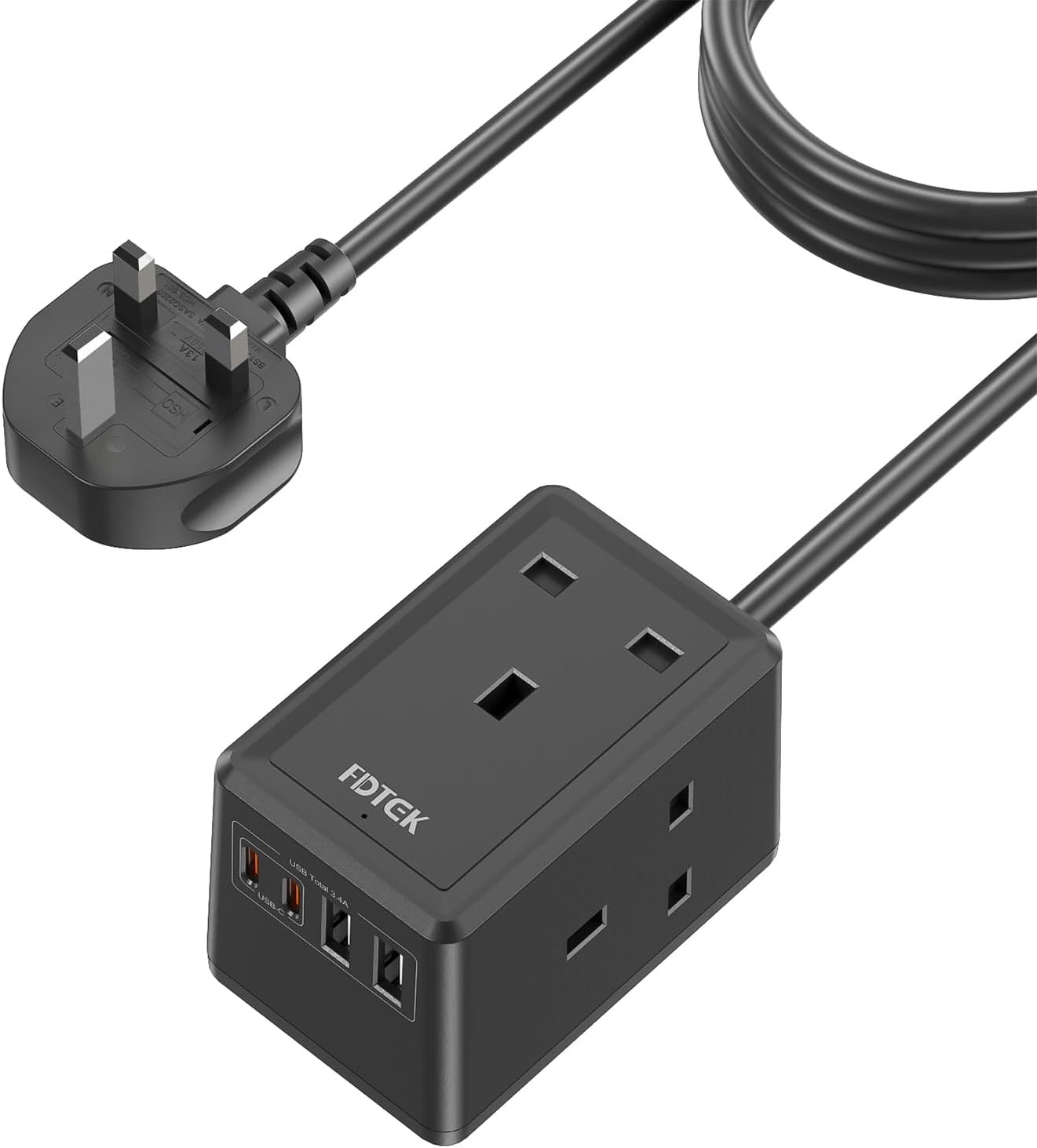 Extension Lead Cube with USB C Slots, FDTEK 3 Gang Socket Extension with 4 USB Ports, Small Extension Plug Wall Mount Power Strip with 1.5M Cable for Home Office Travel 13A/3250W