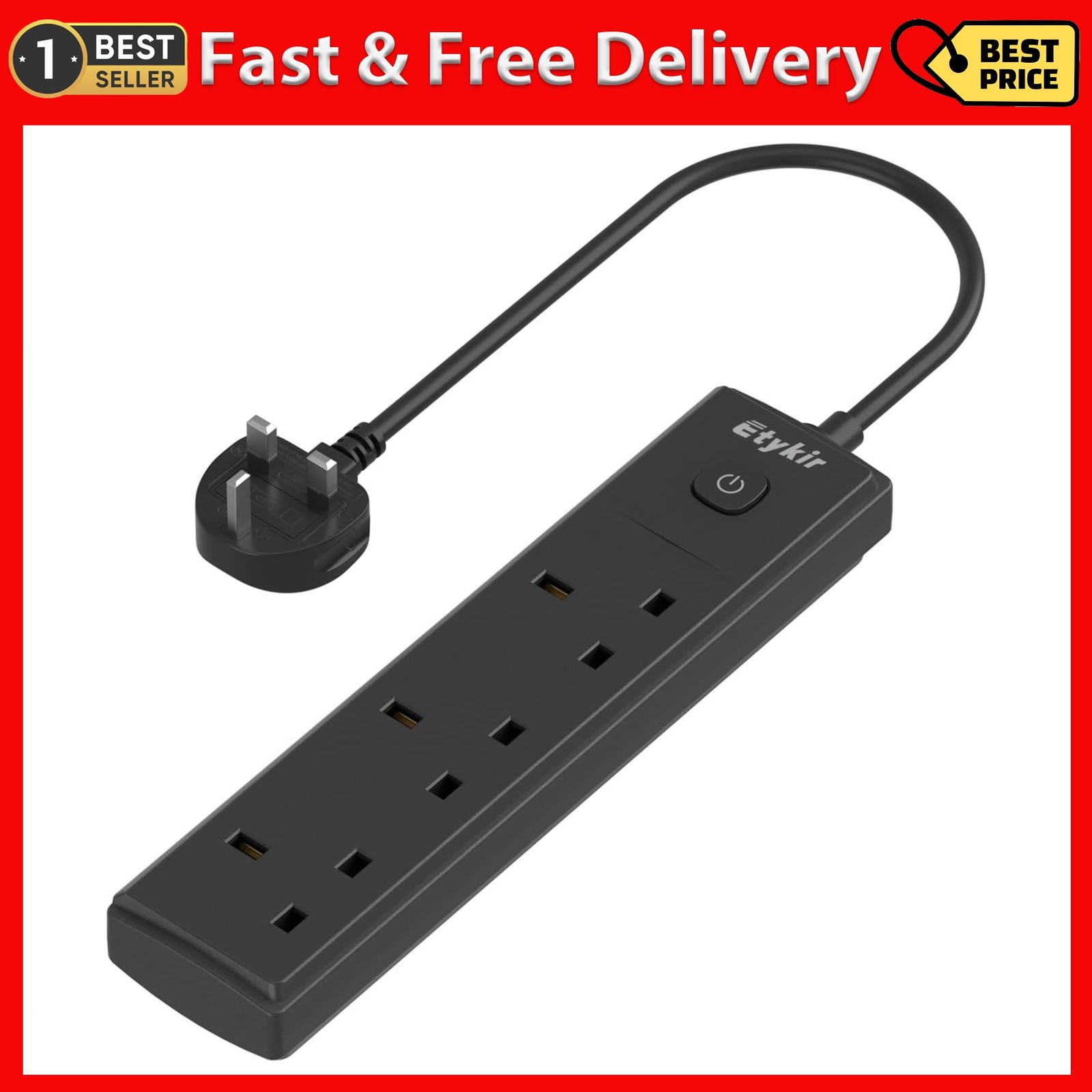 Short Extension Lead, 0.5M Small Extension Cable (13A/3250W), 3 Way Switched Ex