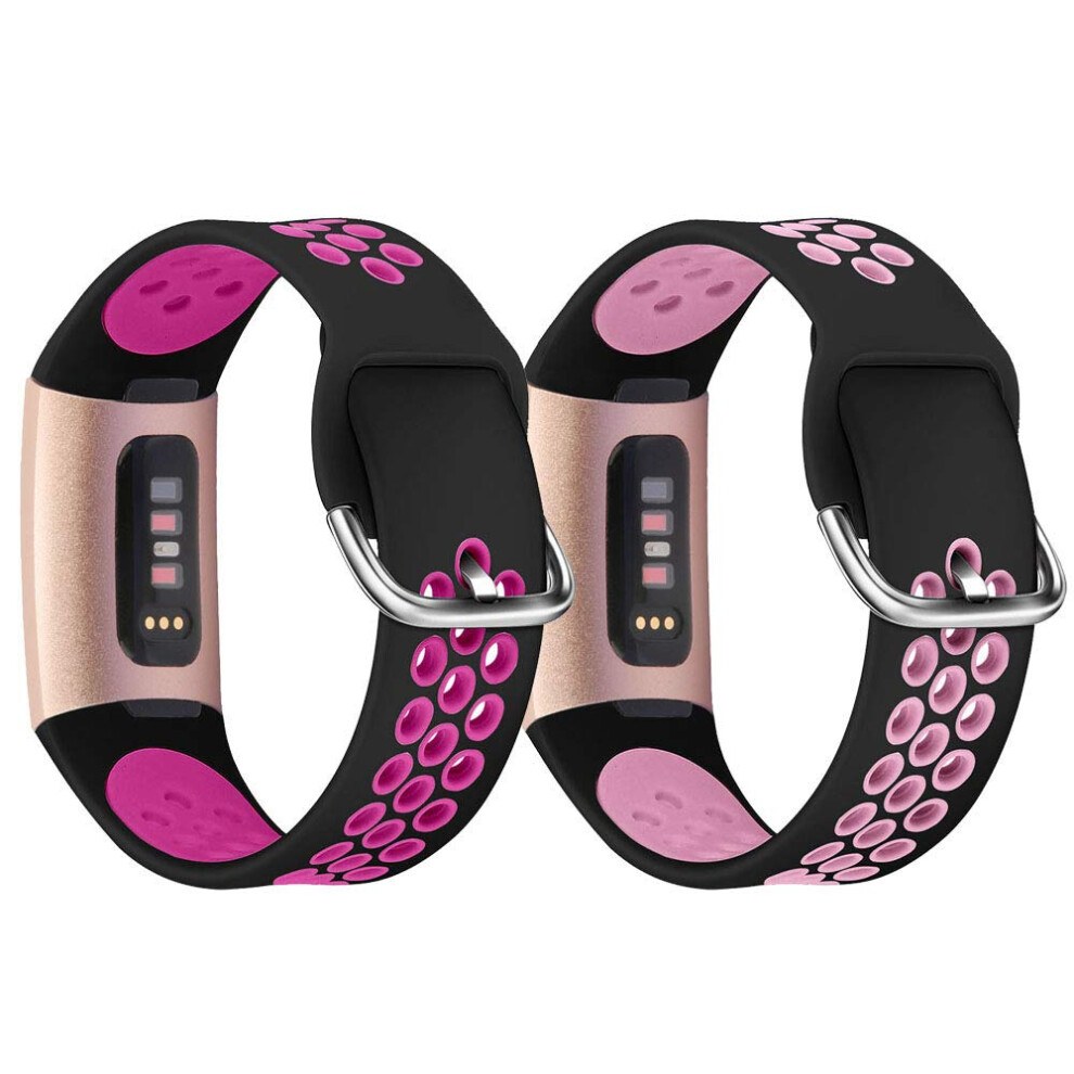 Faliogo 2 Pack Replacement Bands Compatible with Fitbit Charge 3 Bracelet/Fitbit Charge 4 Bracelet, Classic Sport Bands for Women Men, Small, Black/Pink