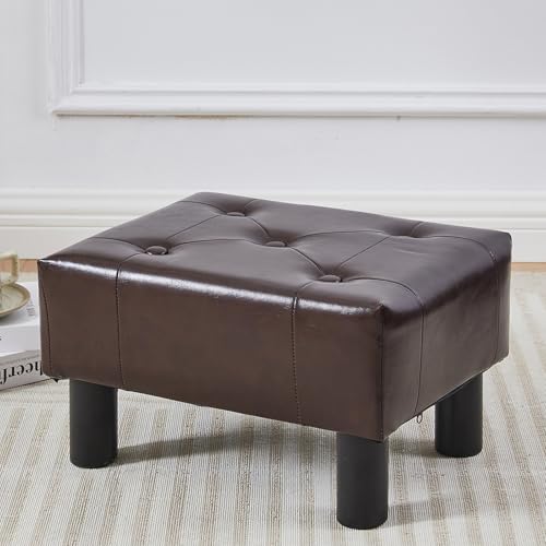 BRIAN & DANY Small Foot Stool, Faux Leather Footstool with Legs, Footstools for Living Room, Ottoman Footrest Extra Seating for Entryway, Brown