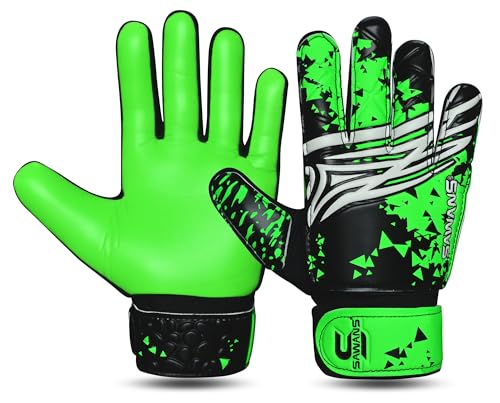 SAWANS Goalkeeper Gloves for Kids Boys Football Youth Soccer Goal Keeping Goalie Protection Double Wrist Finger Support Grip Padded Palm Anti Slip (Black Green, Size 7 suitable for Size Small adult)