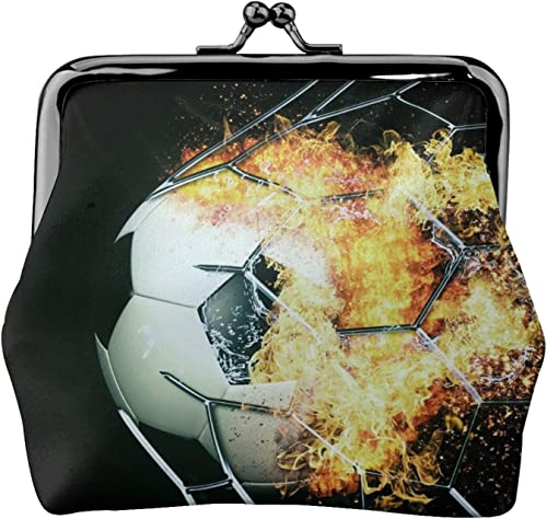 Football Passing Through Goal Women's Leather Coin Purse, Small Change Pouch with Kiss-Lock Clasp Closure Buckle Wallet for Girl Gift