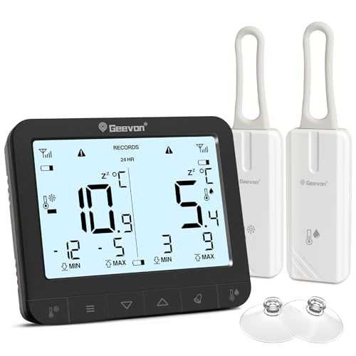 Geevon Refrigerator Thermometer, Digital Fridge and Freezer Temperature Alarm Gauge, Max Min for Accurate Temperature Monitoring, Ideal for Small Fridges and Beverage Coolers (CR2032 battery included)