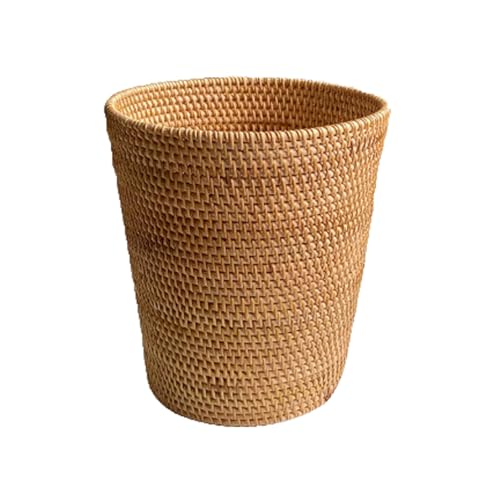 Qxmiguel garbage bin Round Rattan Trash Can Paper Waste Basket Bathroom Garbage Bin Bedroom Kitchen Office Home Desk Small Wicker Bin Compatible with Waste waste bin(Size C)