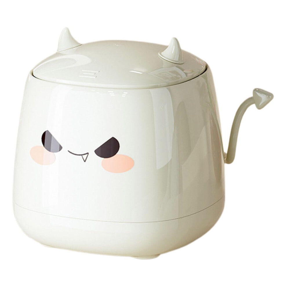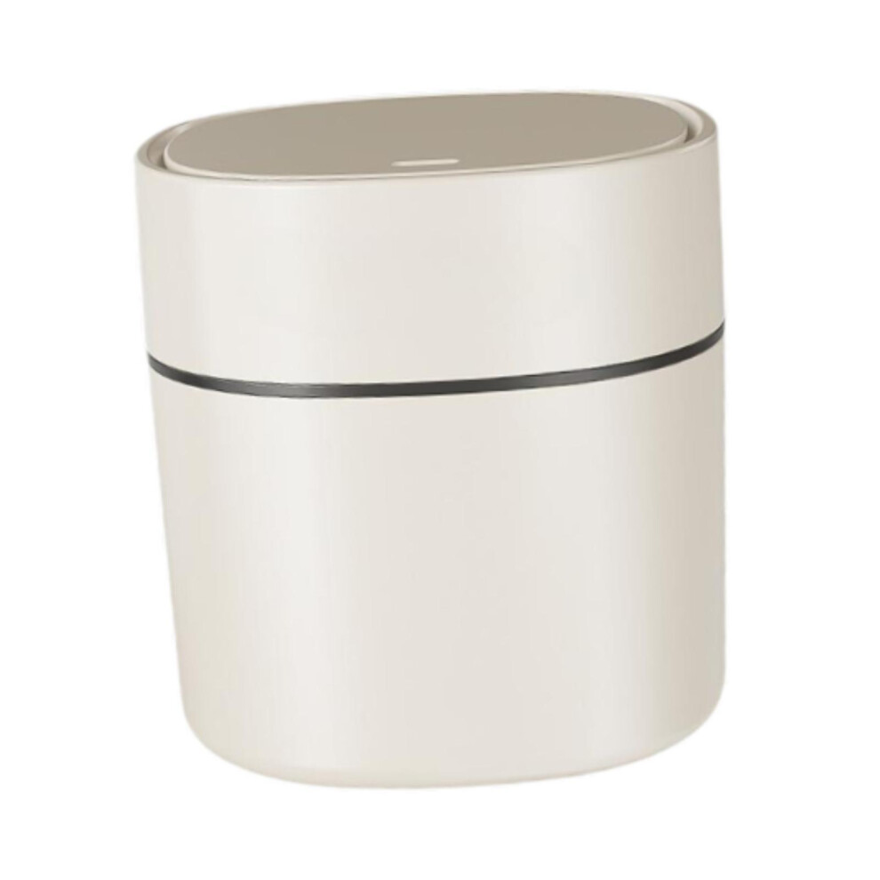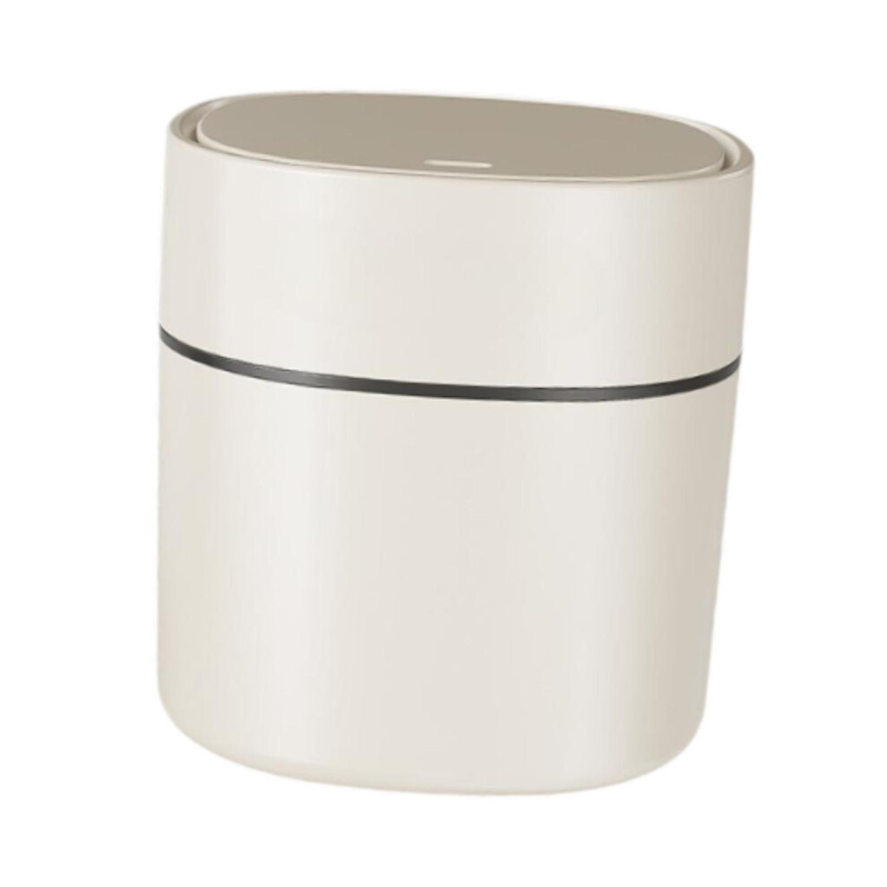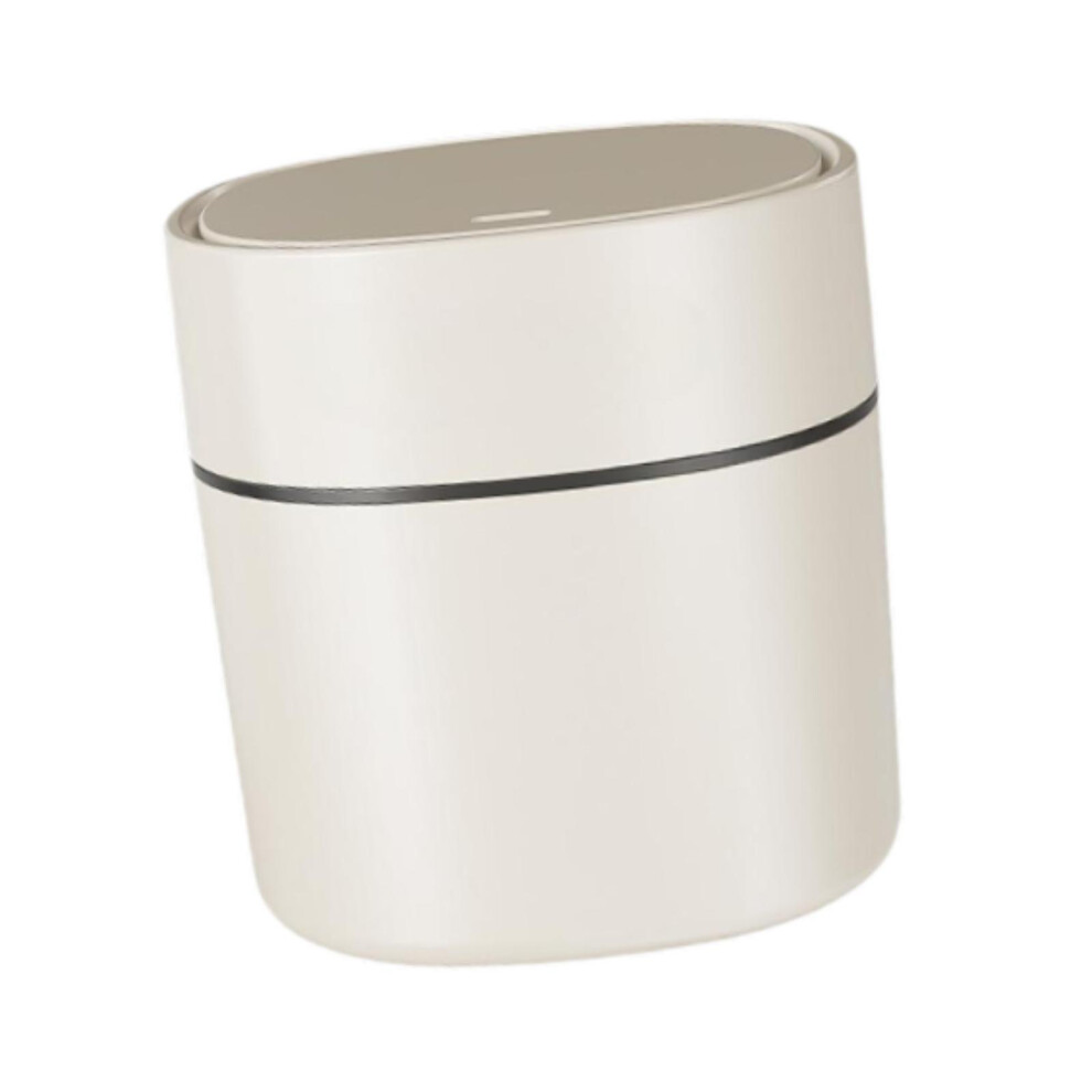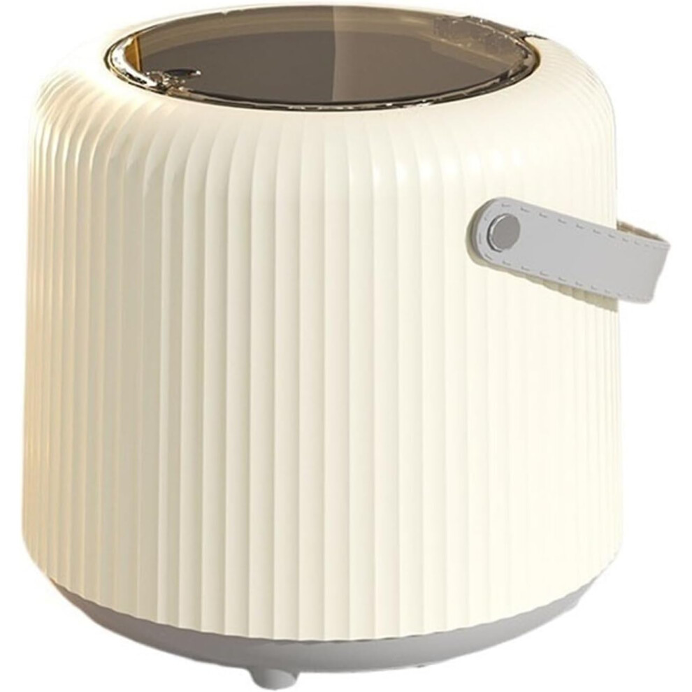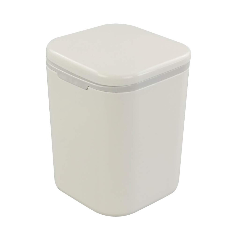 Small Bins Garbage Bin Small Desktop Trash Can with Press Type Lid Cream White Round Wastebasket for Coffee Table Nightstand