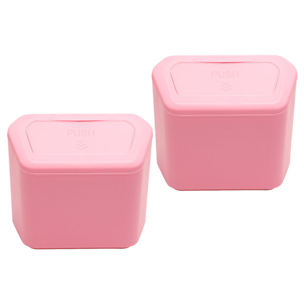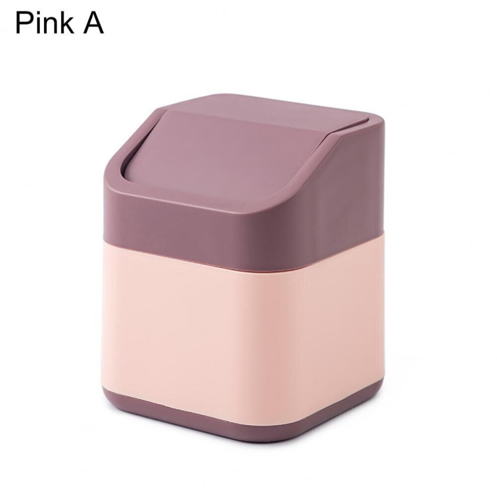 Desktop Trash Can Plastic Multifunctional Small Desk Countertop Garbage Bin with Swing Lid for Home Office Pink