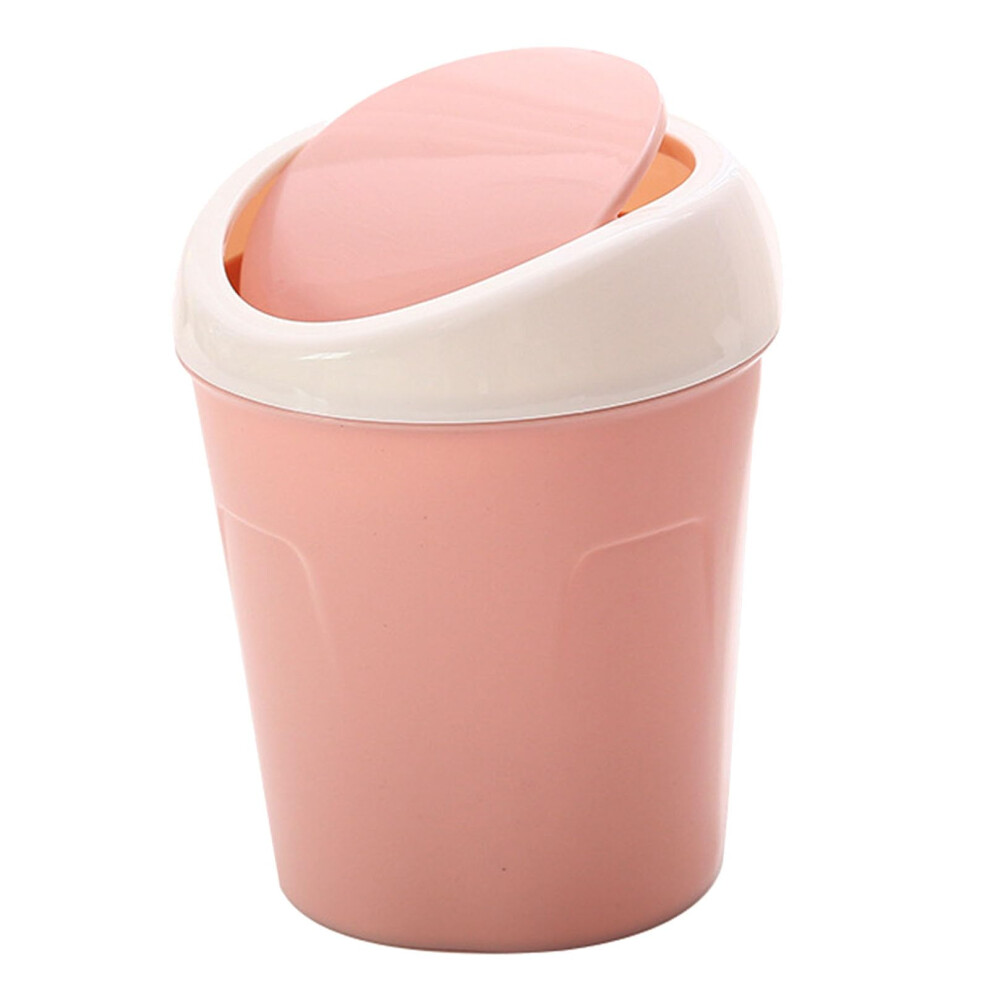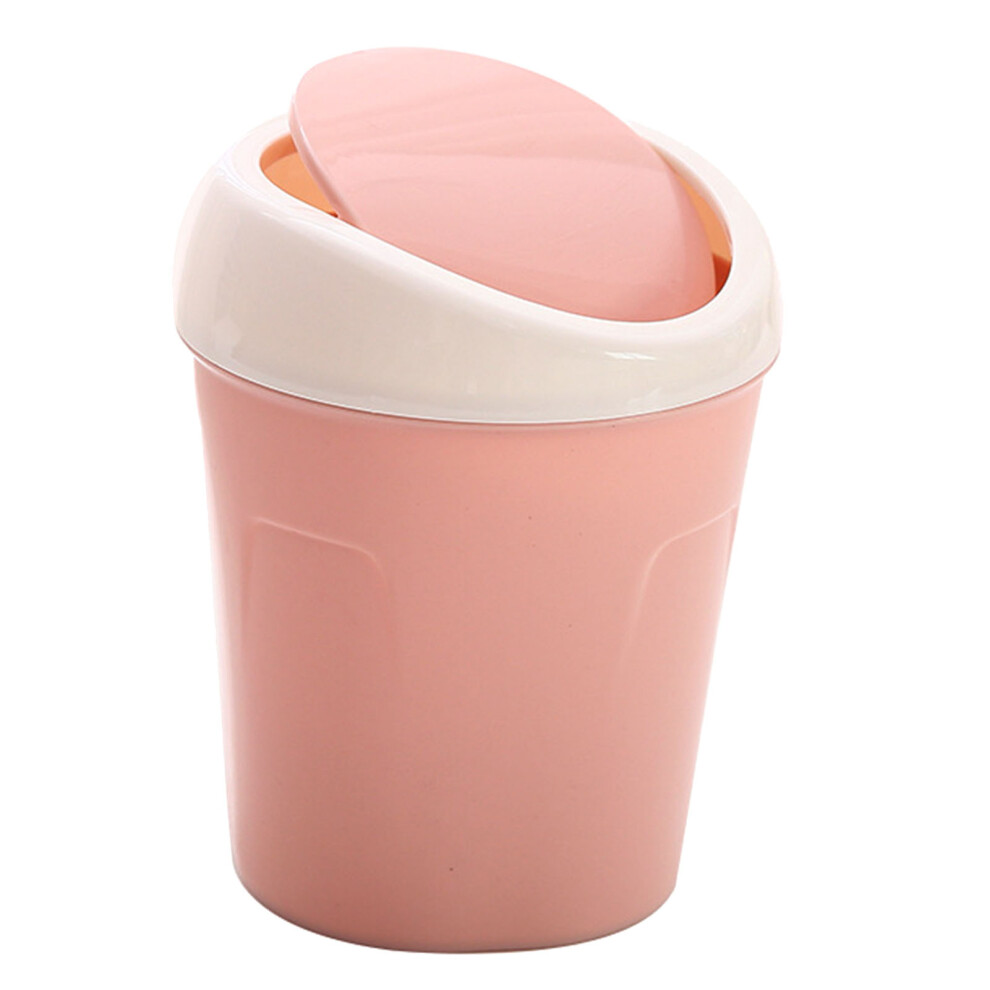 Desktop Trash Can Small Mini Plastic Garbage Bin with Swing Lid for Office Desk and Living Room Decor, Pink