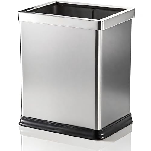 AVLA 10 Liter Open Top Trash Can, Stainless Steel Office Wastebasket, Small Kitchen Garbage Container Bin with Liner, Waste Trashcans for Bathrooms, Restaurant, Restroom, Powder Rooms, Home