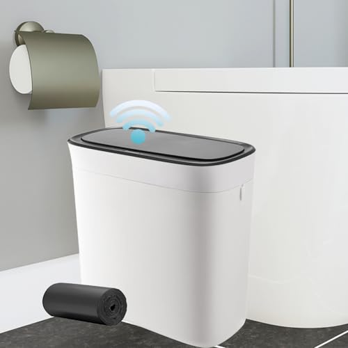 CHAMSUREUK Smart Touchless Bathroom Trash Can 10L Automatic Motion Sensor Rubbish Can with Lid Electric Waterproof Narrow Small Garbage Bin for Kitchen, Office, Toilet, Bedroom with 50pcs Trash bags