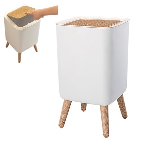 10L/2.6 Gallon,Bedroom Bin with Press Top Lid,Living Room Trash Can with Legs,Small Garbage Bin for Kitchen,Bathroom,Bedroom,Living Room,Office,Dog Proof,Toilet,Outdoor (White, Square)