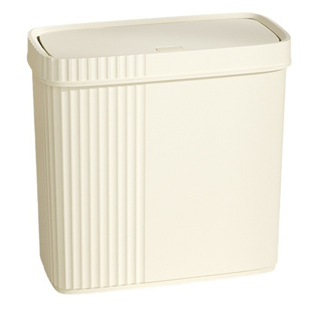 Plastic Trash Can With Lid Press-Type Rectangular Small Garbage Bin, Space-Saving, Khaki, Conceals Plastic Bags