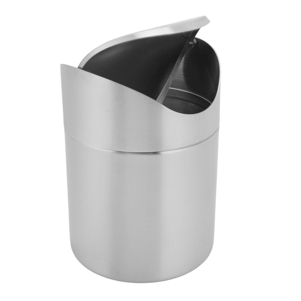 Mini Desktop Trash Can with Swing Lid Small Countertop Tiny Garbage Bin for Car Office 304 Stainless Steel Silver