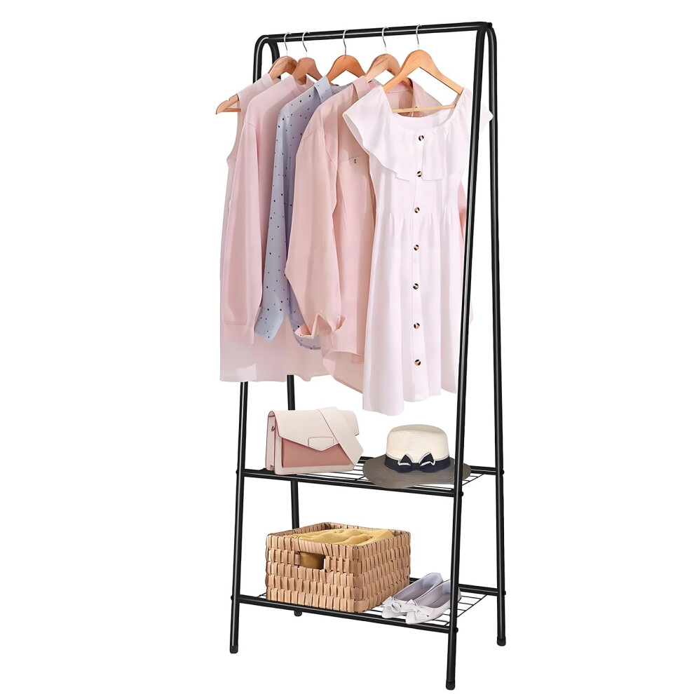 Clothes Rack Metal Clothes Rail Coat Rack For Bedroom 2Tier Storage Garment Rack With Small Wheels 68cm Width Black
