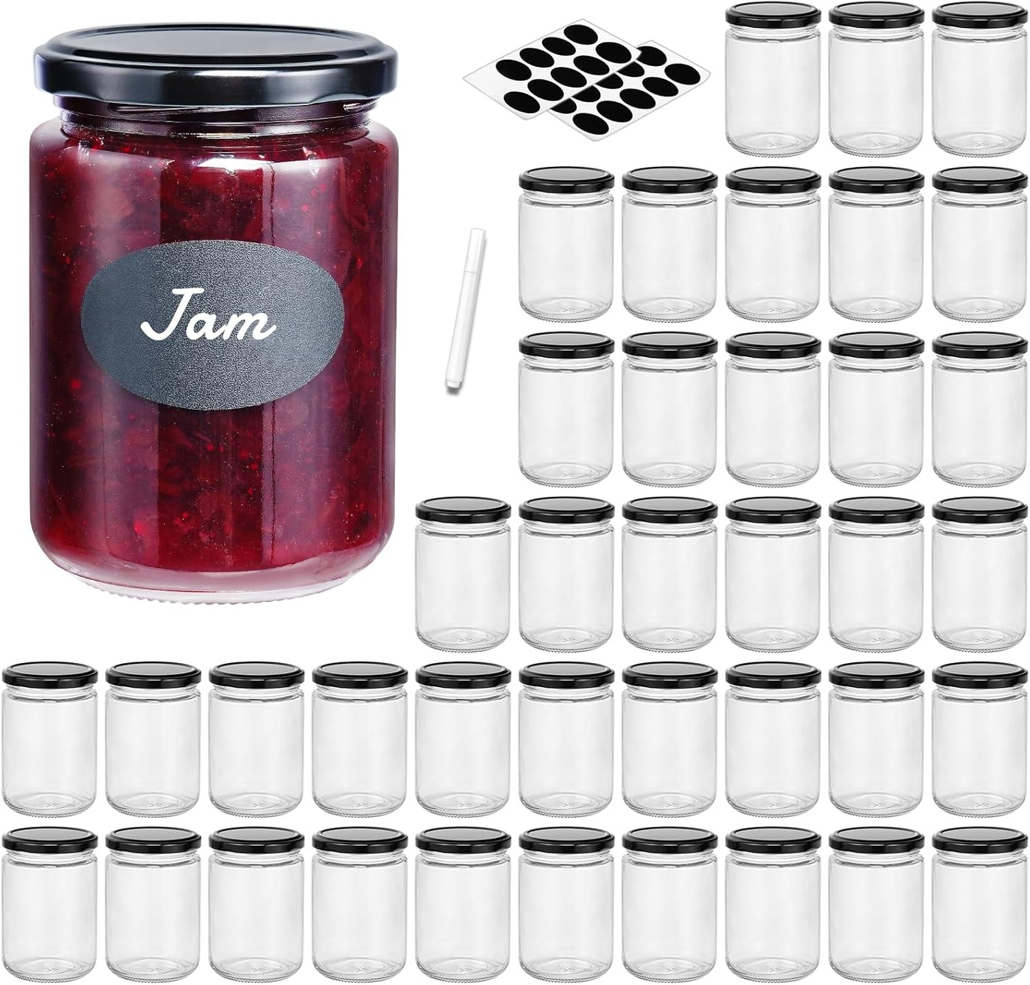 20 Pack Small Glass Jars with Lids and Labels 350ml/12oz - Mason Jars Jam Jars