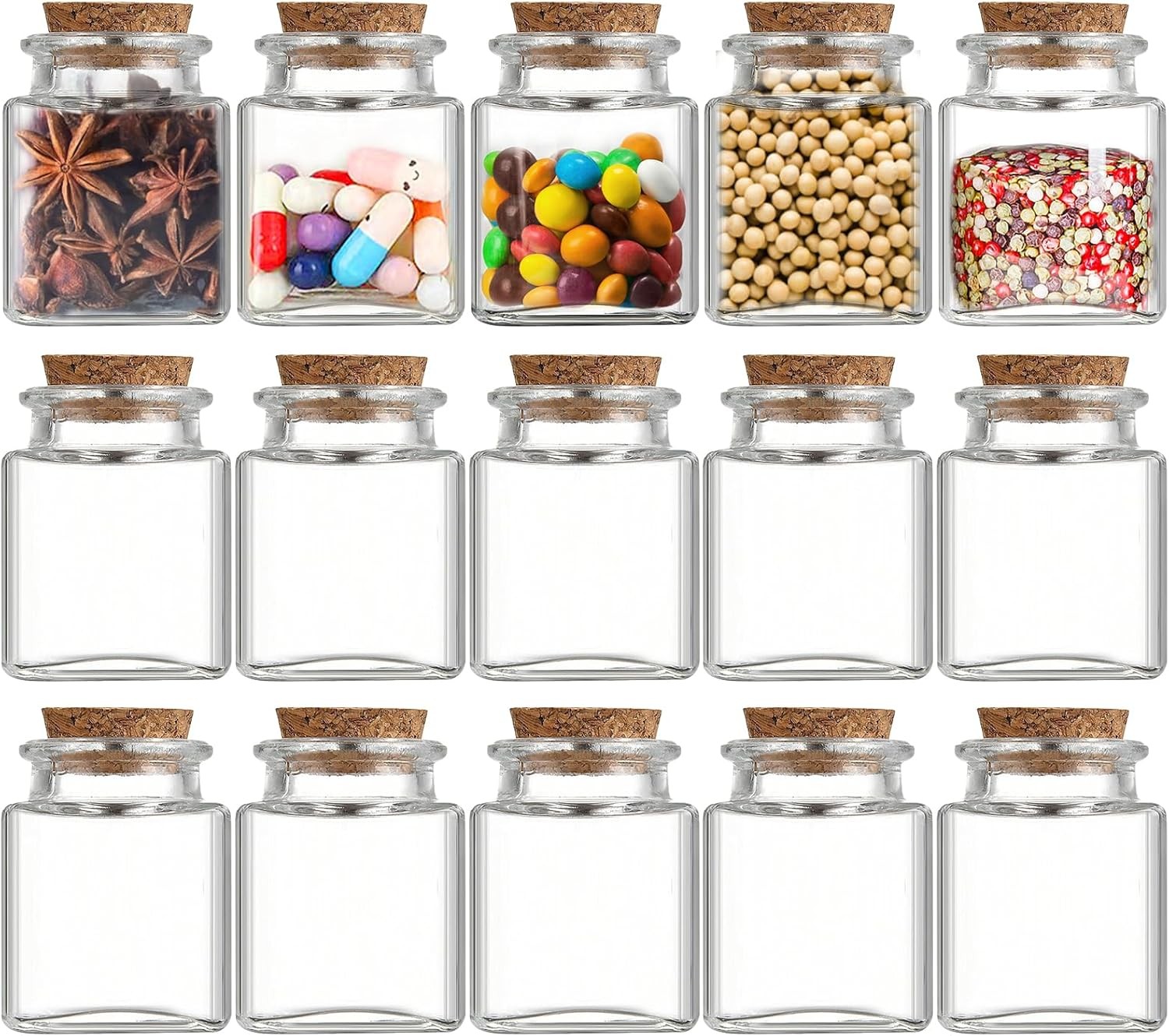 15 Pcs 50ml Small Glass Jars with Cork Stoppers, 43mm x 60mm Square Clear Mini