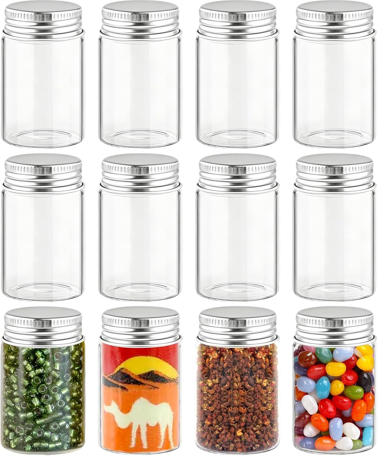 12 Pcs 100ml Small Glass Jars with Aluminum Screw Top, 45mm x 80mm Clear Glass