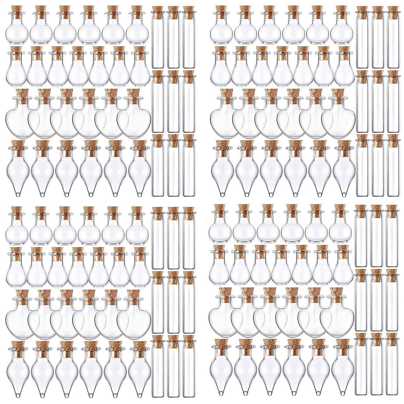 100 Pieces Small Glass Jars Bottles with Cork Stoppers 5 Shapes Tiny4180