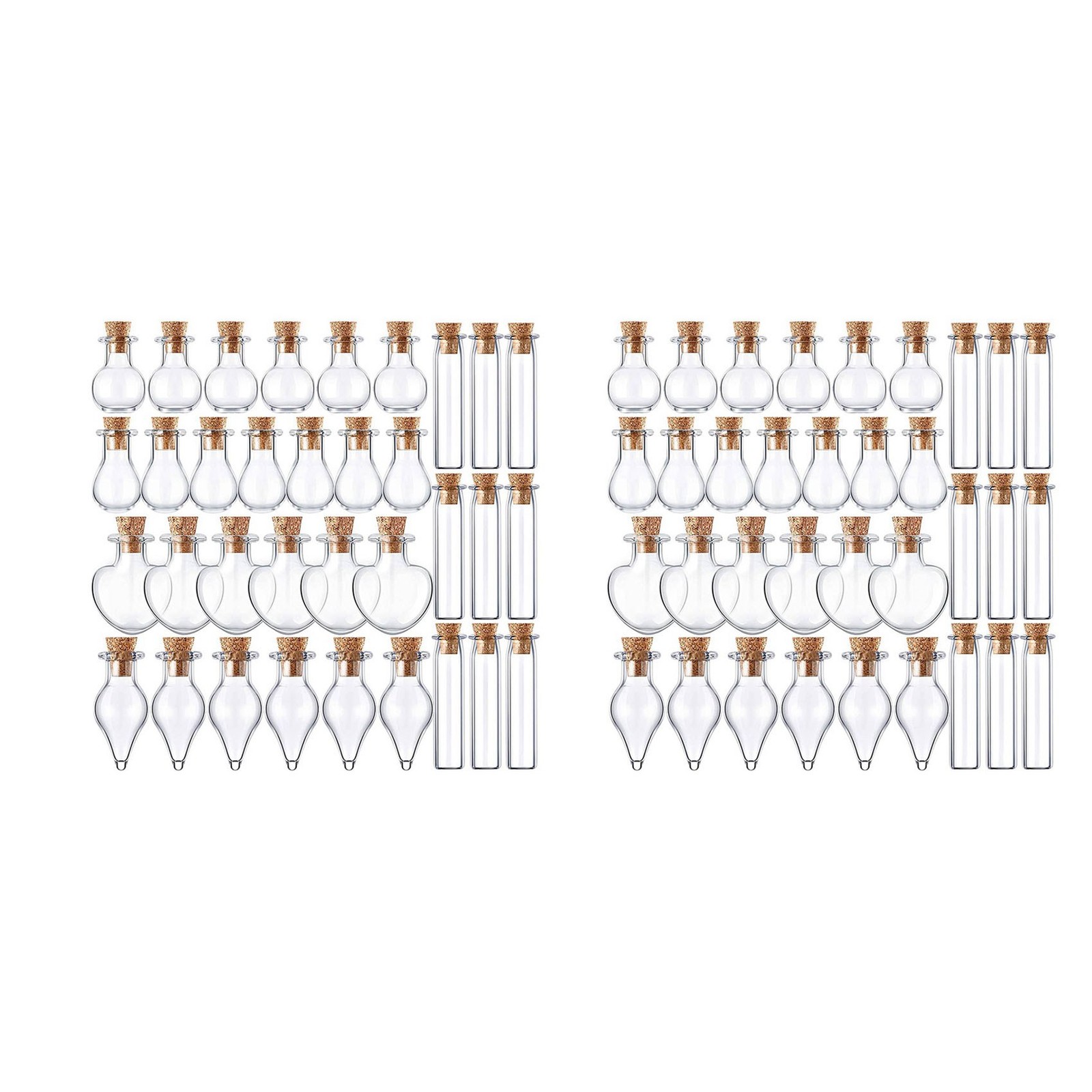 2X(50 Pieces Small Glass Jars Bottles with Cork Stoppers 5 Shapes Tiny9152