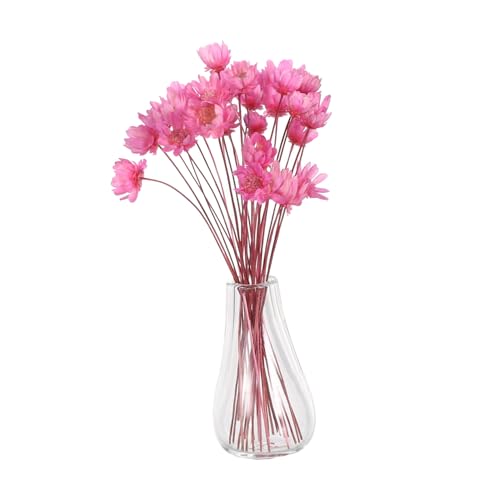 Kisangel 2pcs Miniature Dollhouse Plant Pink Glass Vases with Dried Flower Bouquets Compact Mini Potted Flowers for Doll House Accessories Craft DIY Decoration for Small Spaces and