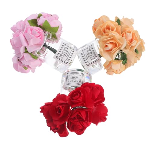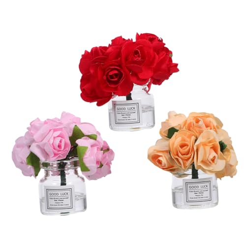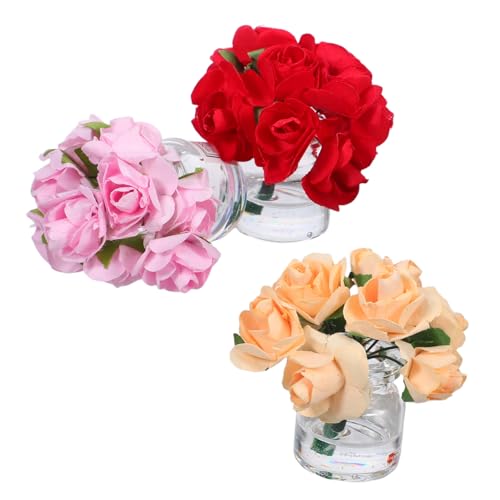 Parliky 3pcs Miniature Dollhouse Glass Vase with Simulation Small Roses Nordic Glass Mini Vases for Dollhouse Decorations Romantic Rose Model Ornaments Gift-ready Tiny Flower Display