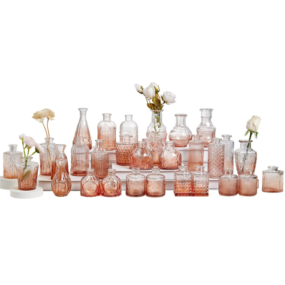 Arme Bud Vase Set of 30 Pink Vases in Bulk Bud Vase for Flower Small Glass Vases for Wedding Centerpieces Vintage Cute Mini Flower Vases Home Table
