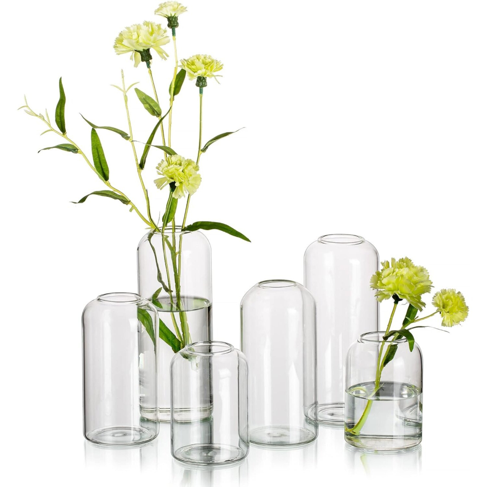 Glass Bud Vases for Flowers - Blown Modern Small Glass Vases for Centerpieces Set of 6, Mini Clear Bulk Flower Vases(Not Include Flower)
