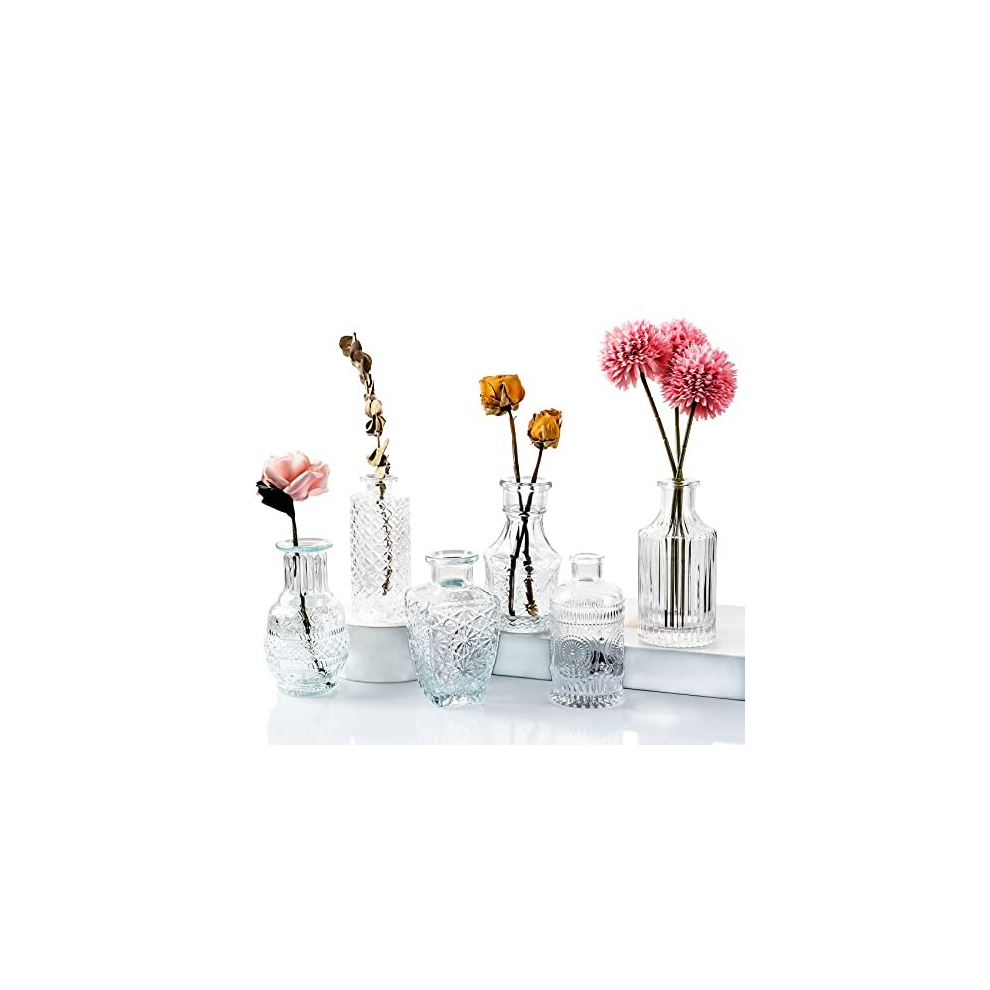 6Pcs Small Clear Glass Bud Vases, Vintage Mini Flower Vases for Wedding, Center