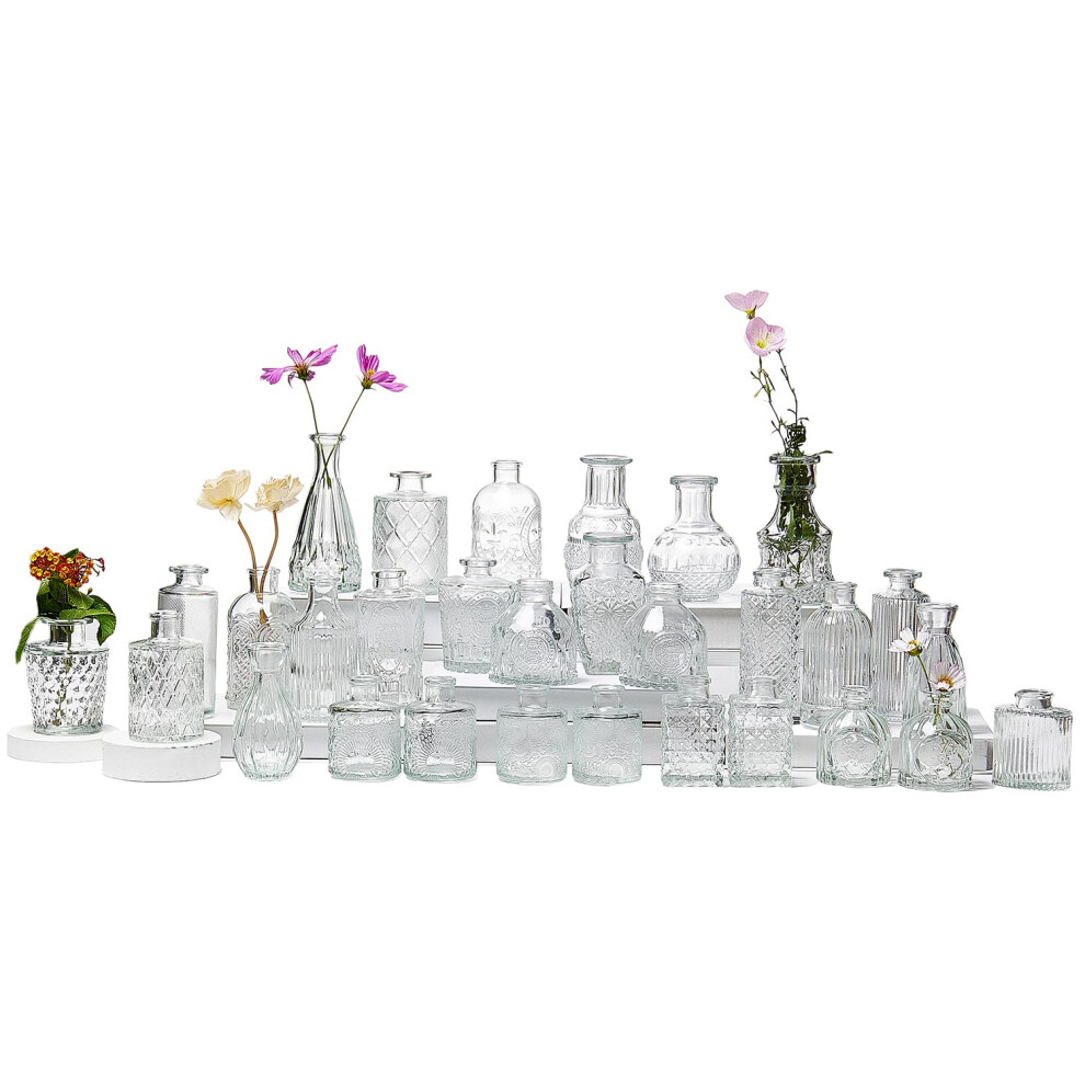 Glass Bud Vases Set of 30 Transparent Floral Patterns, Glass Small Vases for Ta